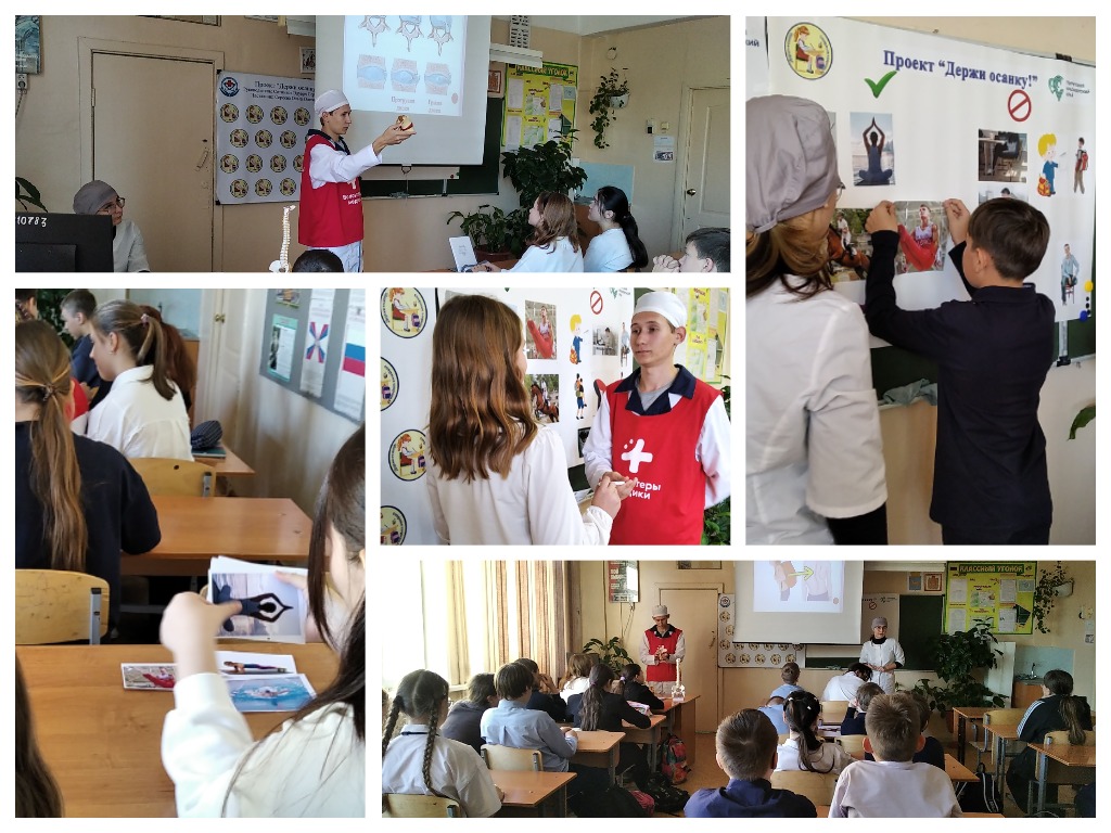 Студенты второго курса «Лечебное дело» последовательно в каждом классе провели занятия для шестиклассников. Сотников Эдуард и Киселева Эвелина совместно с наставником Сереевой О.О. объяснили значение сохранения правильной осанки. Школьникам рассказали о важности сохранения осанки, на примерах объяснили, что может привести к искривлению позвоночника. Ребята также освоили комплекс физических упражнений, позволяющих снять нагрузку после длительного статического положения тела.